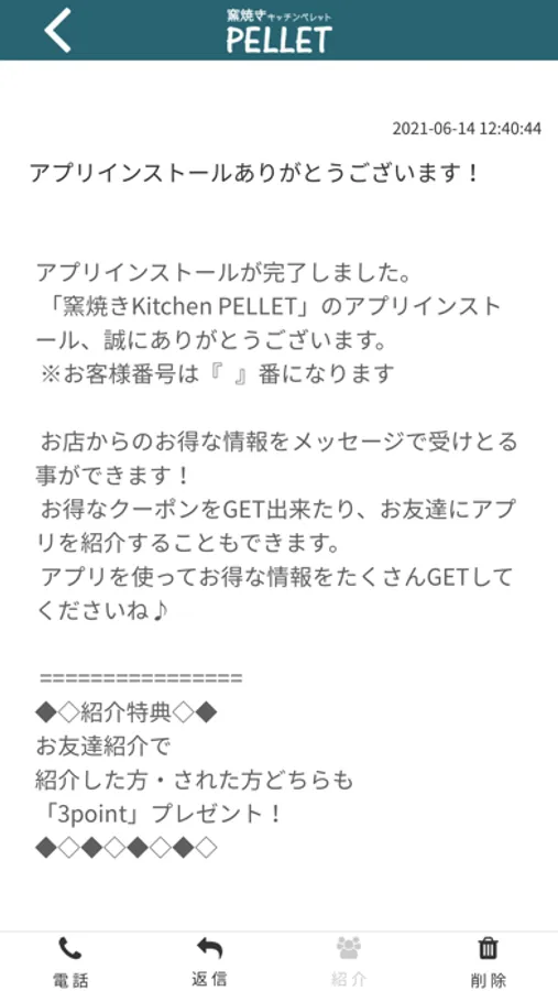 窯焼きPELLETのアプリをSNSを通じてお友達に紹介する事ができます。
