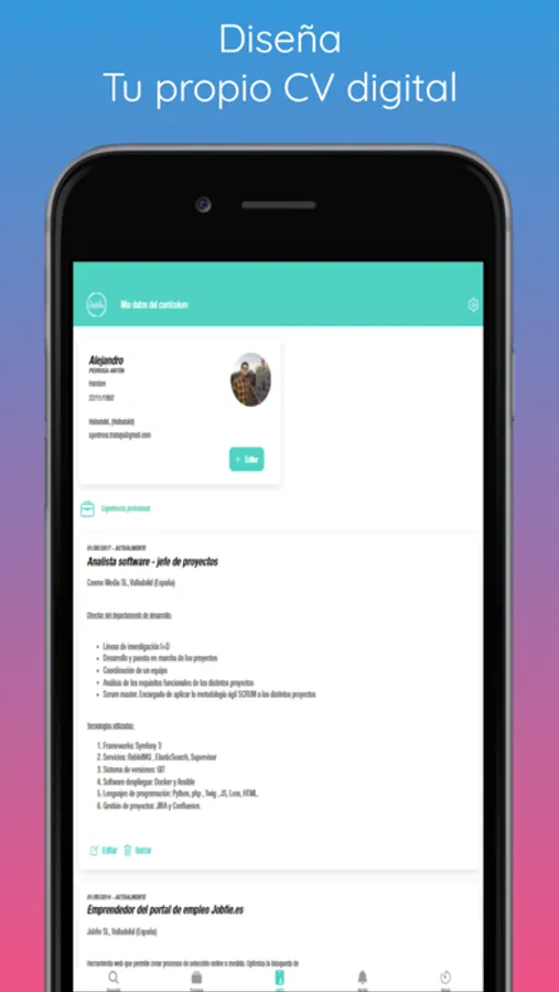 Jobfie es un portal de empleo para buscar y encontrar trabajo en base a tus habilidades y competencias de tu CV totalmente gratis.