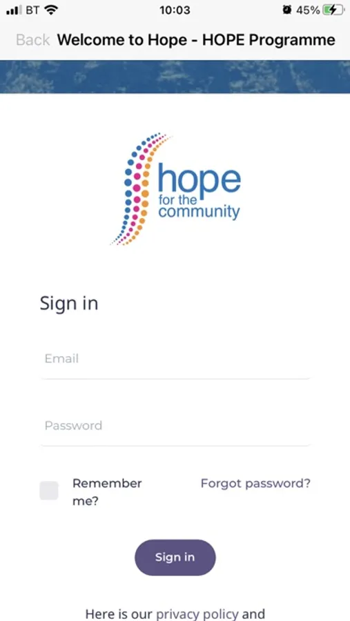 Download the app if an account has been created for you on the Hope Programme or on a course hosted on the app.