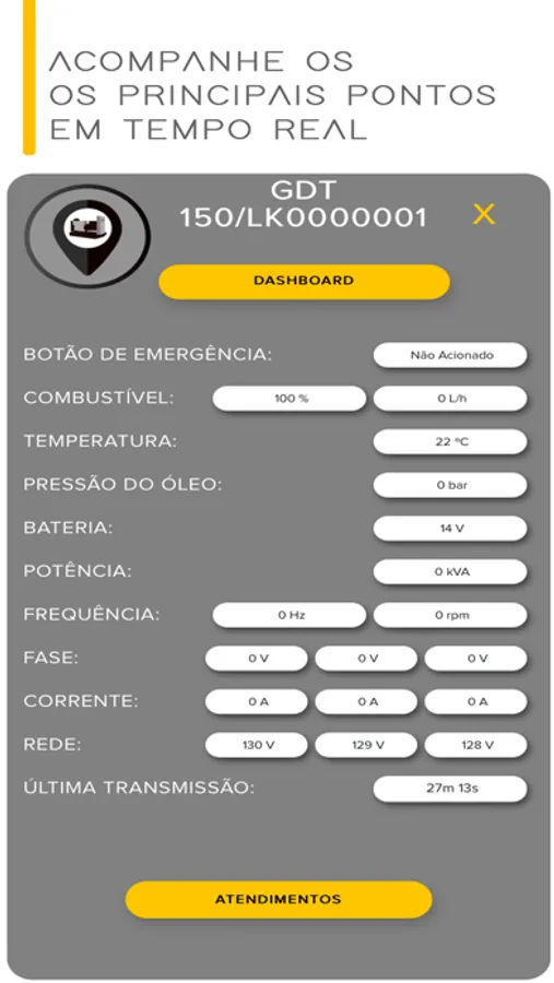 Monitoramento em tempo real: Veja todos os parâmetros do seu gerador, a qualquer momento, na tela do seu celular.