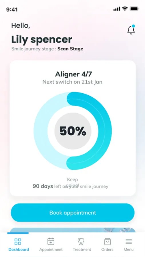 Smile Genius allows you to take control of your treatments: clear aligner, whitening, bonding and more. Keep in touch with your Dentist with video calling and direct messaging, view and approve your treatment plans, make purchases, take photos of your teeth to keep up-to-date with your treatment process. Get notifications and reminders, book appointments and so much more.