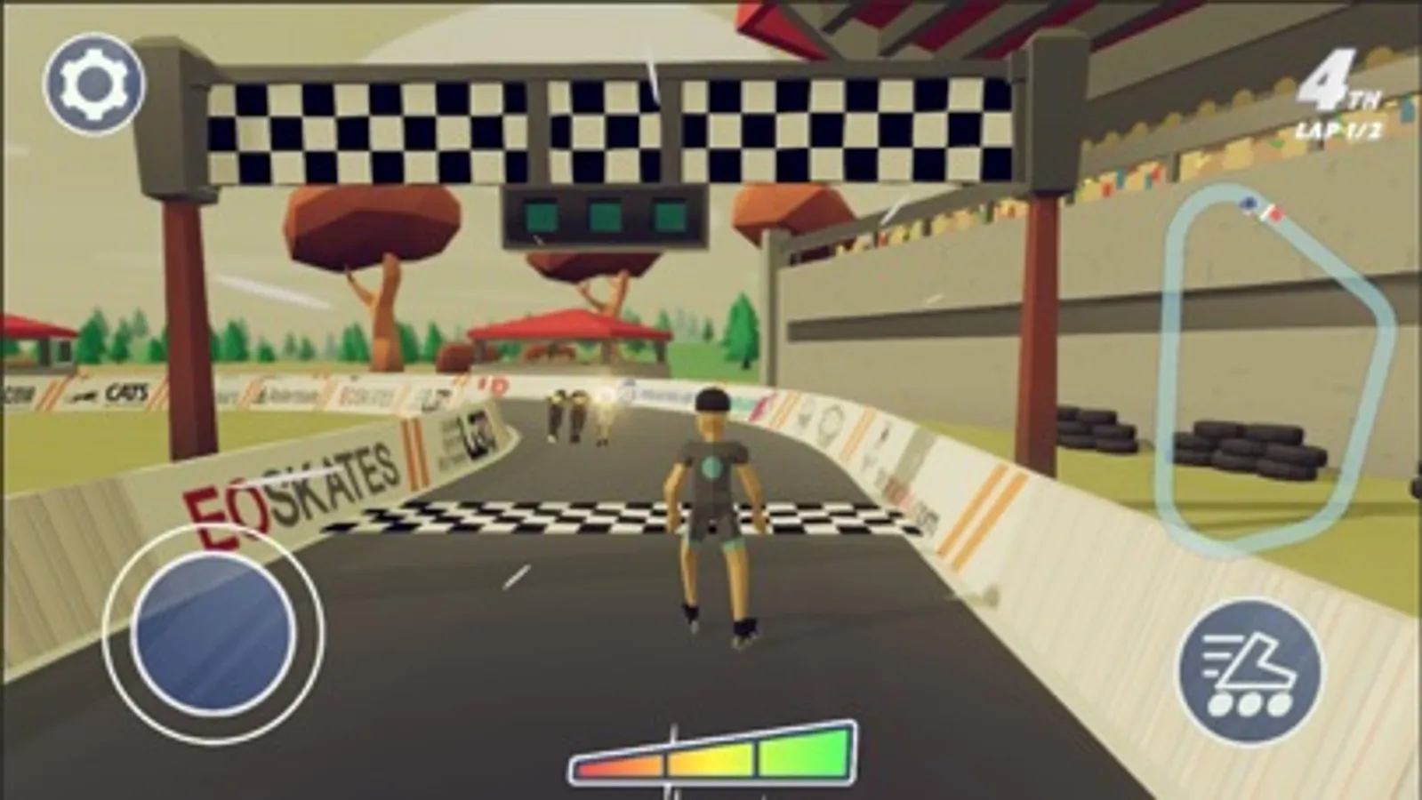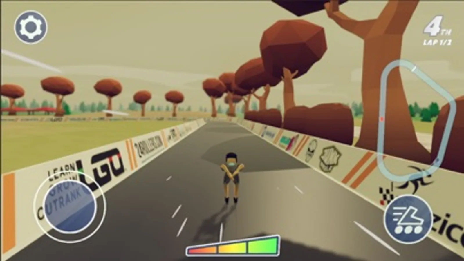 Control the skater with the joystick and sprint using the special button. If you can race well, you will unlock some new circuits, new skinsuits from your favorite sponsors like ROLLERBLADE, POWERSLIDE, EOSKATES, or many more. You can also win some cool skates or helmets. Race in championship mode in your favorite specialty: SHORT, MEDIUM, or LONG distance to become a local, national, or even THE WORLD CHAMPION. If you do so, you will probably get access to the longest lap in the game to get a feeling of the 24h roller race against all the 40th skaters from the game.