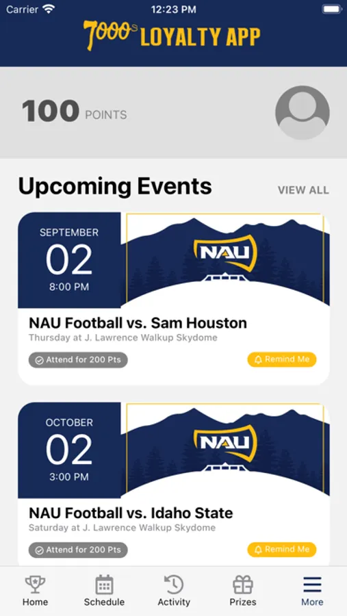 7000s Loyalty App is the official student rewards program for NAU Athletics! Go to events, earn points, and use those points to redeem prizes! Joining the 7000s Loyalty App is FREE to all students. All you need is your student email to sign up! Once you login, make sure to turn on push notifications to stay up to date on all things NAU Athletics including giveaways, promotions, and discounts!