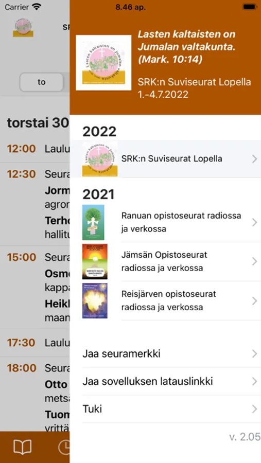 - Suviseurojen ja opistoseurojen seuraohjelmat