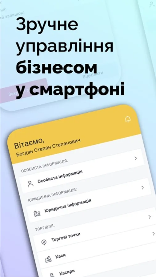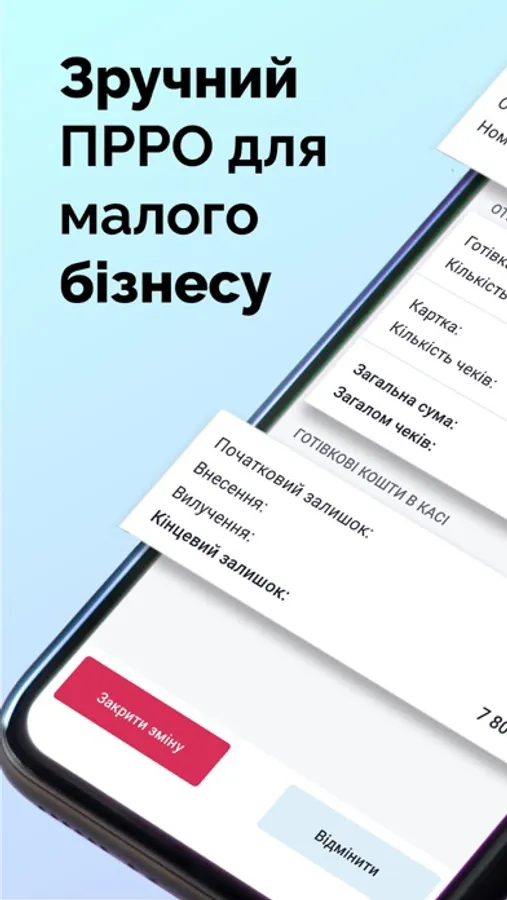- Реєструйте необмежену кількість кас та касирів.