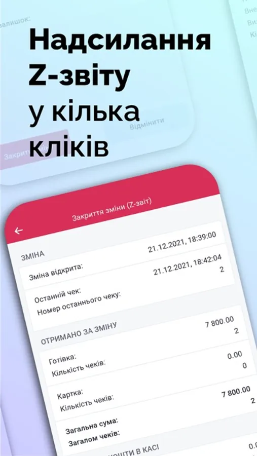 - Автоматично відкривайте та закривайте зміни.