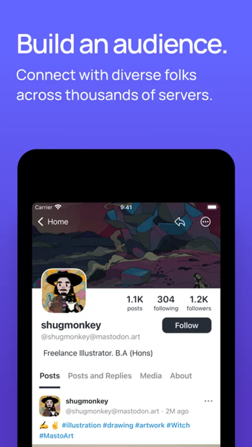 Join a community and create your profile. Find and and follow fascinating folks and read their posts in an ad-free, chronological timeline. Express yourself with custom emoji, images, GIFs, videos, and audio in 500-character posts. Reply to threads and reblog posts from anyone to share great stuff. Find new accounts to follow and trending hashtags to expand your network.