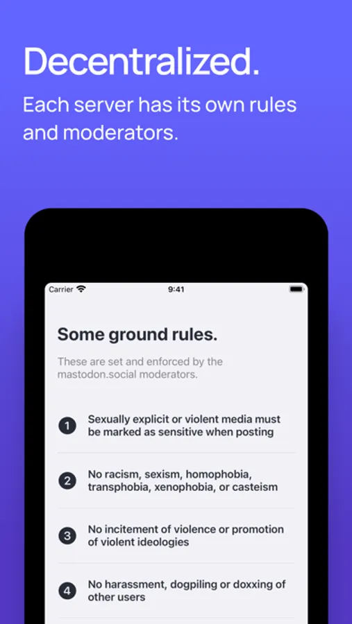 Mastodon is built with a focus on privacy and safety. Decide whether your posts are shared with your followers, just the people you mention, or the whole world. Content warnings let you hide posts containing sensitive or triggering material until you're ready to engage with them. Each community has its own guidelines and moderators to keep its members safe, and robust blocking and reporting tools help prevent abuse.