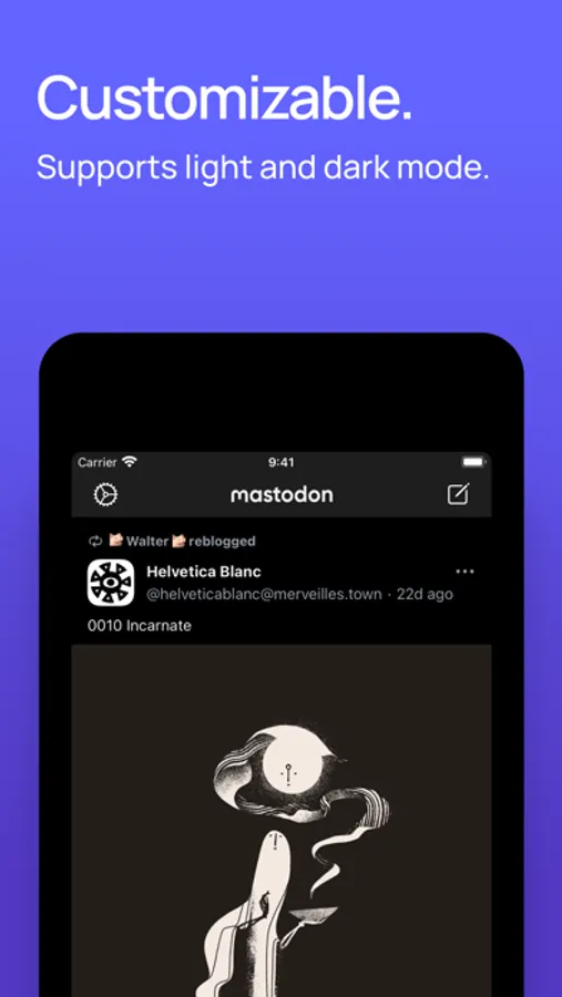 • Dark Mode: Read posts in light, dark, or true black mode