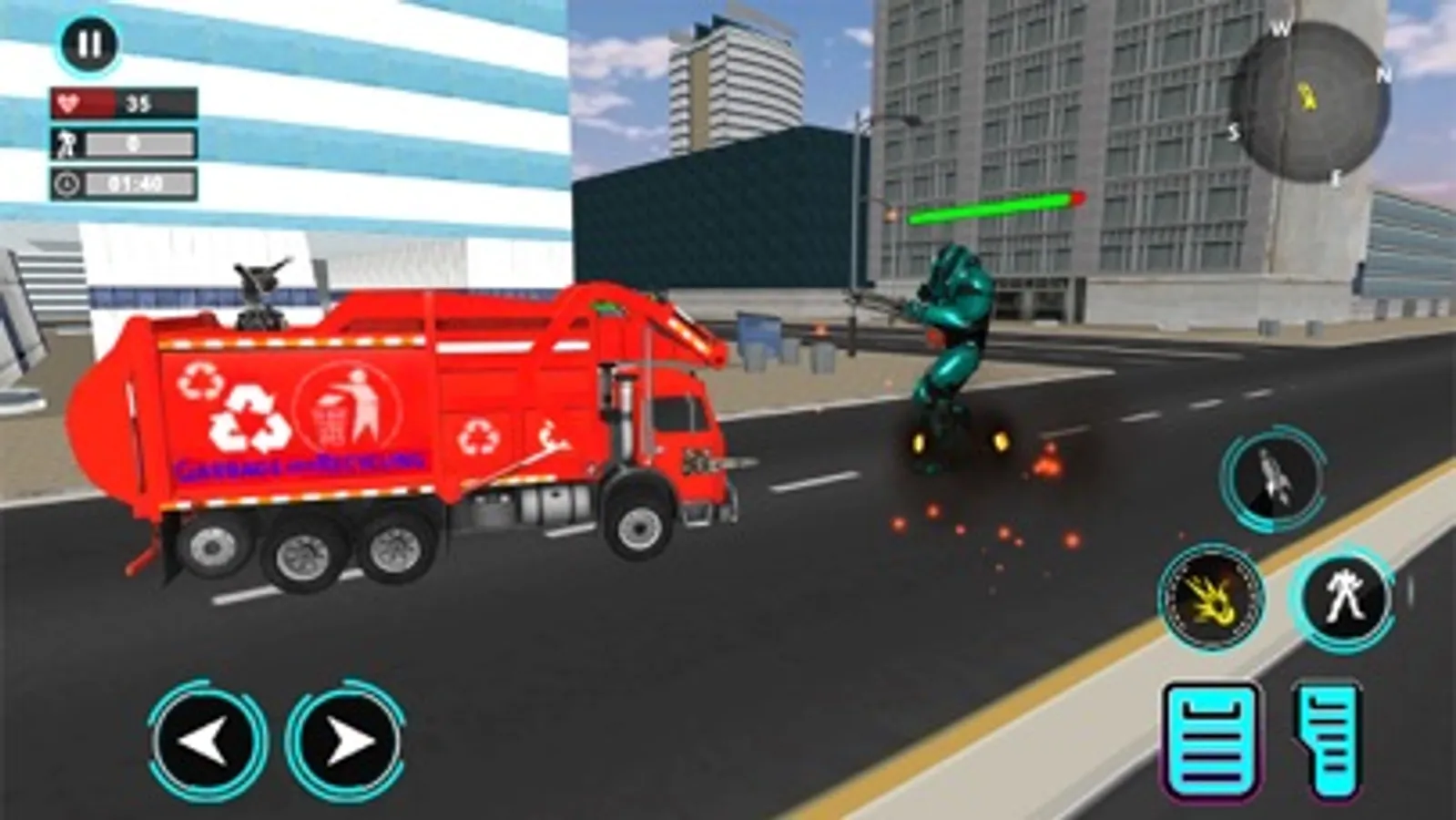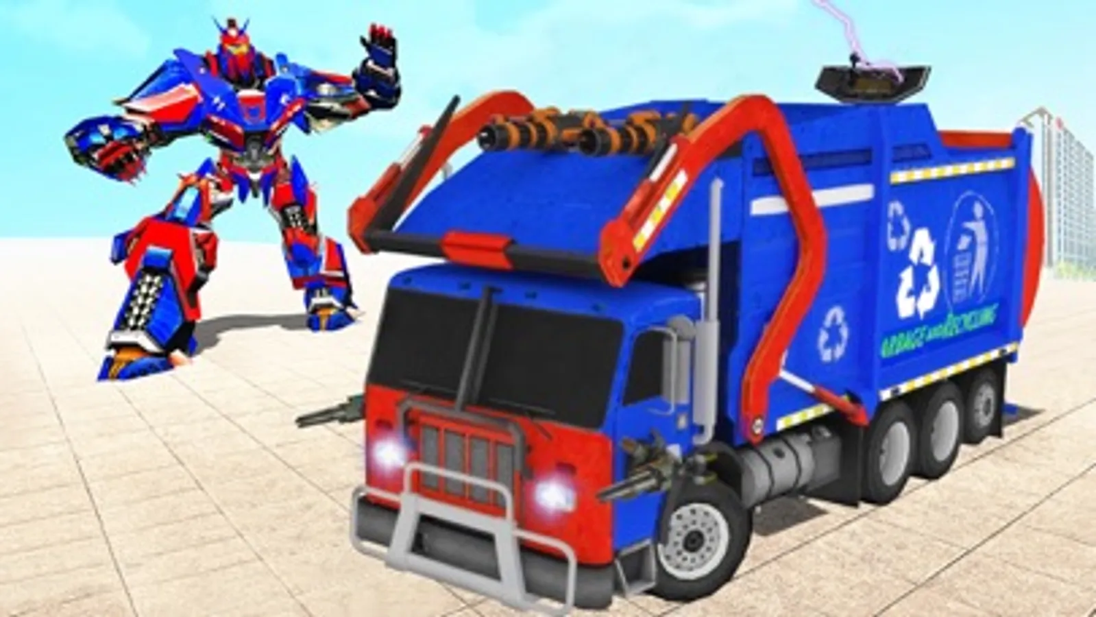 Welcome to City garbage flying truck transforming robot game, New cities need most advanced flying garbage truck robot transform for quick emergency response as some of the city buildings are under attack in garbage truck driving games. Flying garbage truck robot game is stealth garbage truck which will transform into a fighter jet robot and transporter truck robotic war. Park your garbage truck on parking area and collect trash and transport from streets to garbage site and Entertain yourself with action adventure of real robot shooting games.