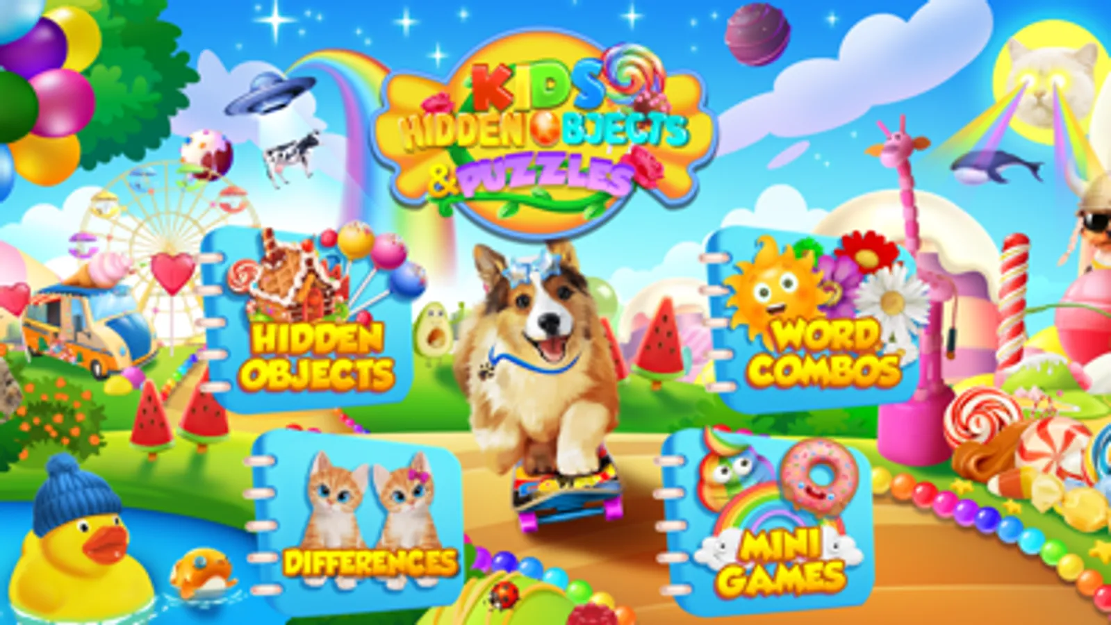 Game has Hidden Object Puzzles, Memory Matching, Combo Words and Same Sounds, and Exciting Mini Games! Engaging and Educational Learning App!