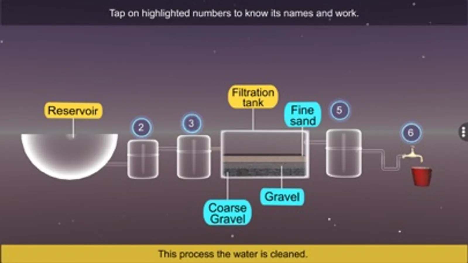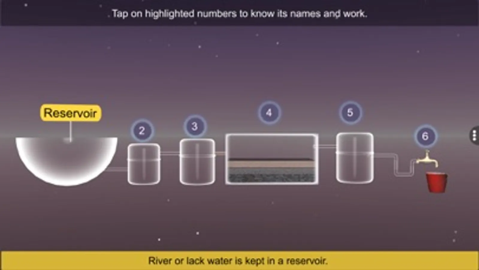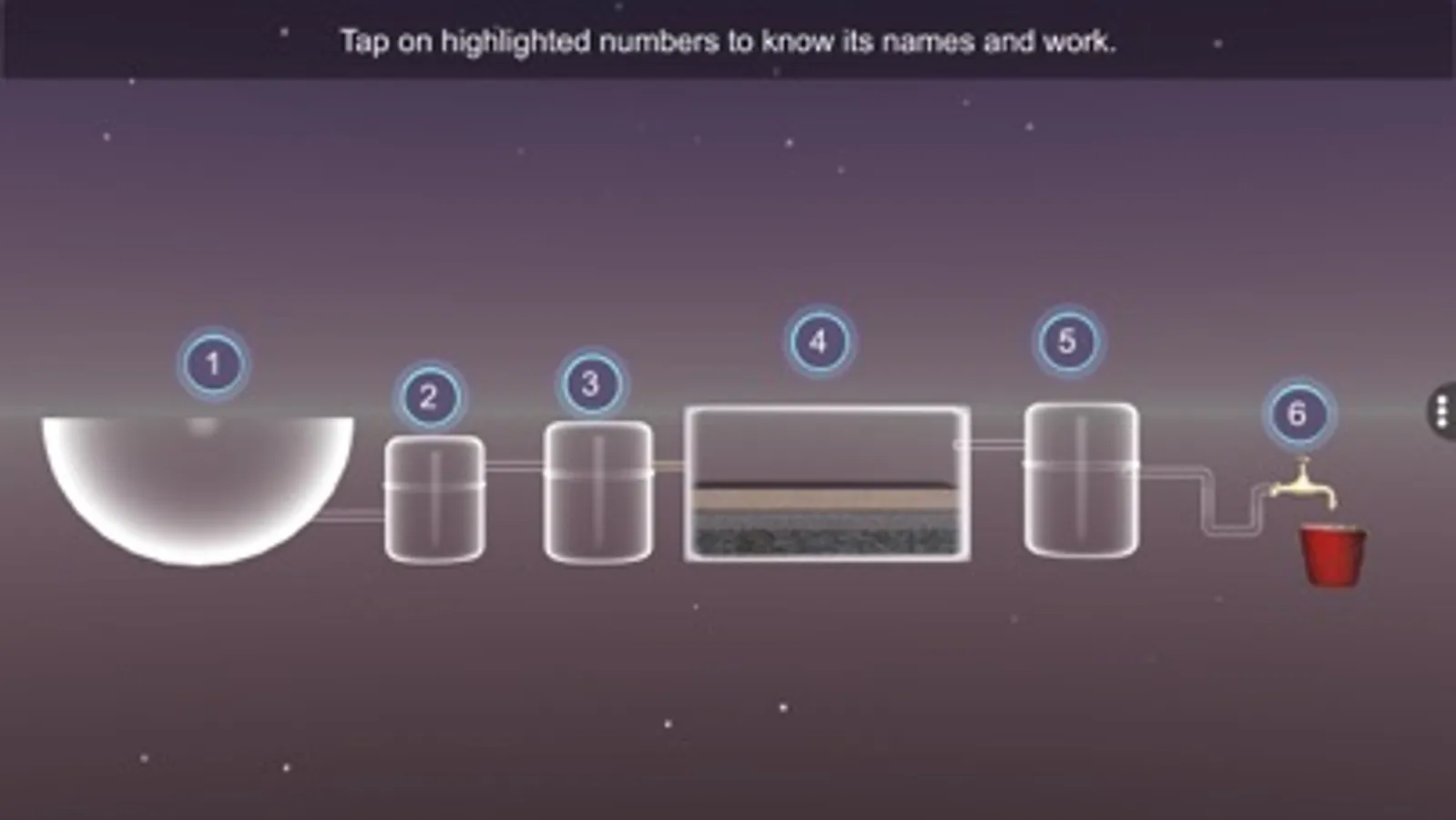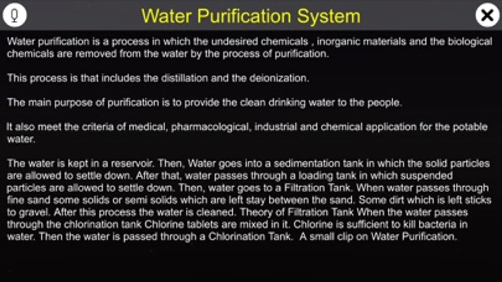 - Tap and Pinch Zoom - zoom into and identify about the water purification system.
