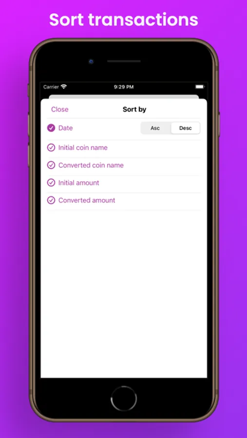 - Sort transactions by various criteria.