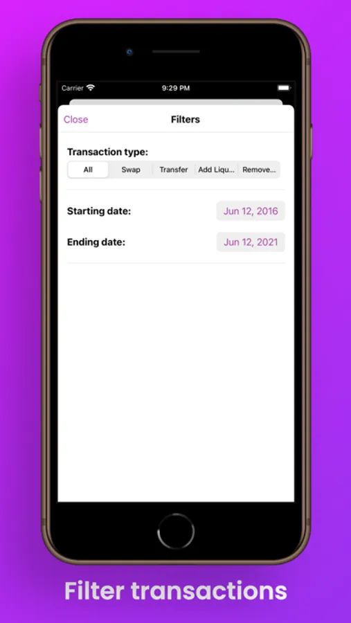 - Filter the transaction list to view specific transactions.