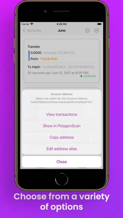 - Quick access to QuickSwap and PolygonScan by tapping on coins, transactions, or addresses.