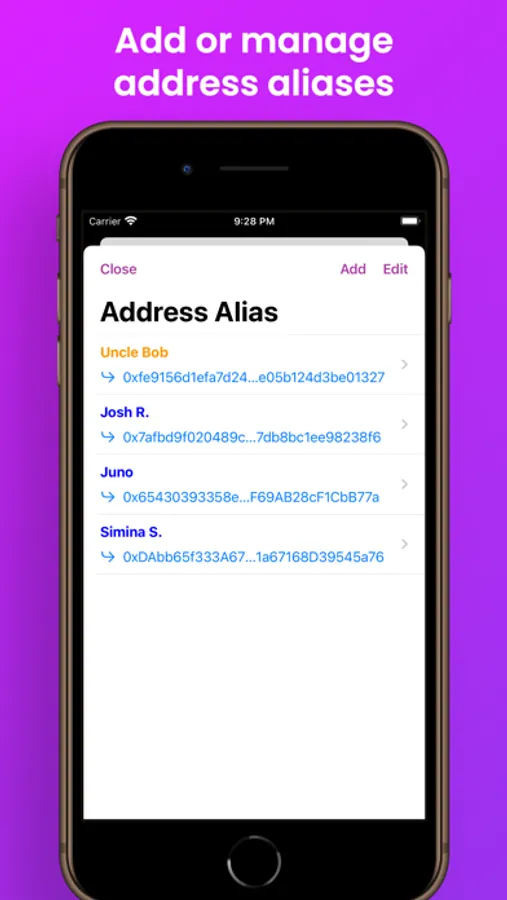 - Assign aliases to addresses for improved visibility.