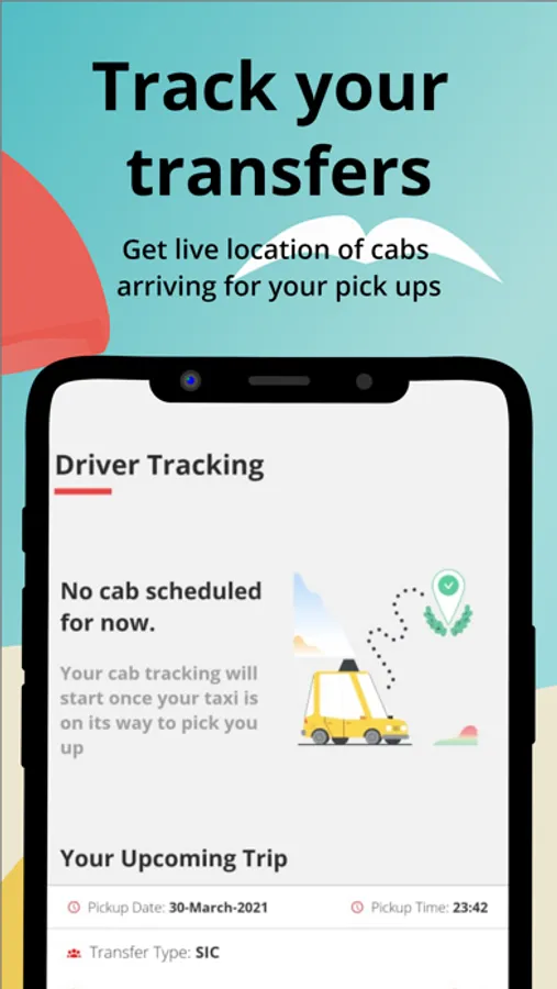 • Track your cab – A cab tracker which helps to locate and check the progress of the pick-up cab. The tracker displays the driver's location only after the cab driver has logged in and has clicked on the “start journey” button.