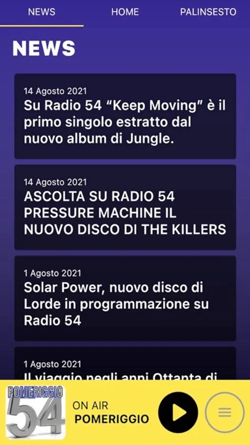 Segui in diretta Radio 54, consulta il suo palinsesto, resta aggiornato con le news e mettiti in contatto diretto con i conduttori!