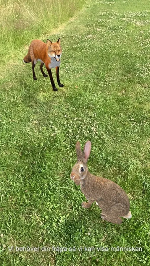 Ett djur har oväntat rymt från museet och rör sig nu fritt i omgivningarna… Vad är det för ett mystiskt djur? Tillsammans med räven får deltagaren spana runt i museets gröna park, Vegaplatsen. Hitta djuren i parken och svara på frågor från exempelvis fältharen, humlan och kattugglan, så har du chans att få se det hemliga djuret!