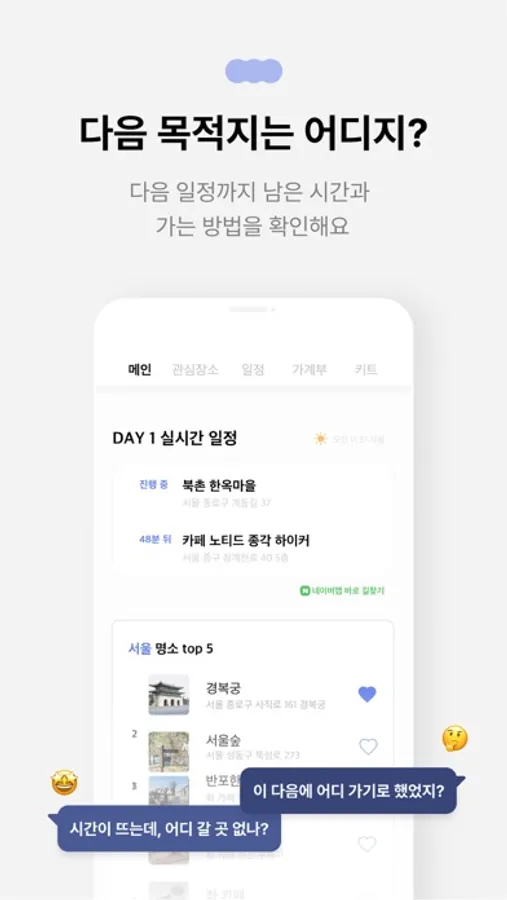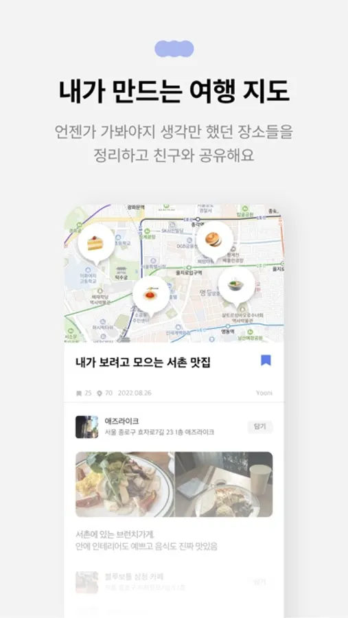 관심장소에 가고 싶은 장소를 추가하여 친구들과 공유해보세요.