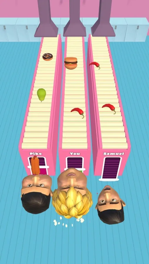 You must defeat your opponents by getting as strong as possible by eating all the food. Surprise dishes are waiting for you. Some dishes are very tasty. Some are not tasty at all. You decide this.