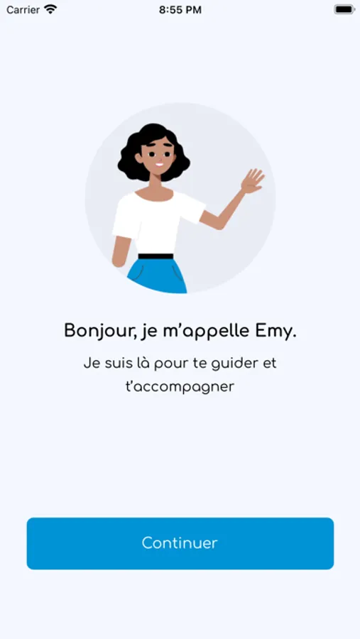 Dans l’application une assistante (Emy) sera présente afin de guider et d’accompagner l’utilisateur.