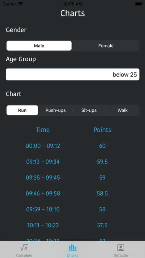 - Update Charts tab show scoring criteria for all events and brackets. Just so you can argue that you should be in a different age bracket.