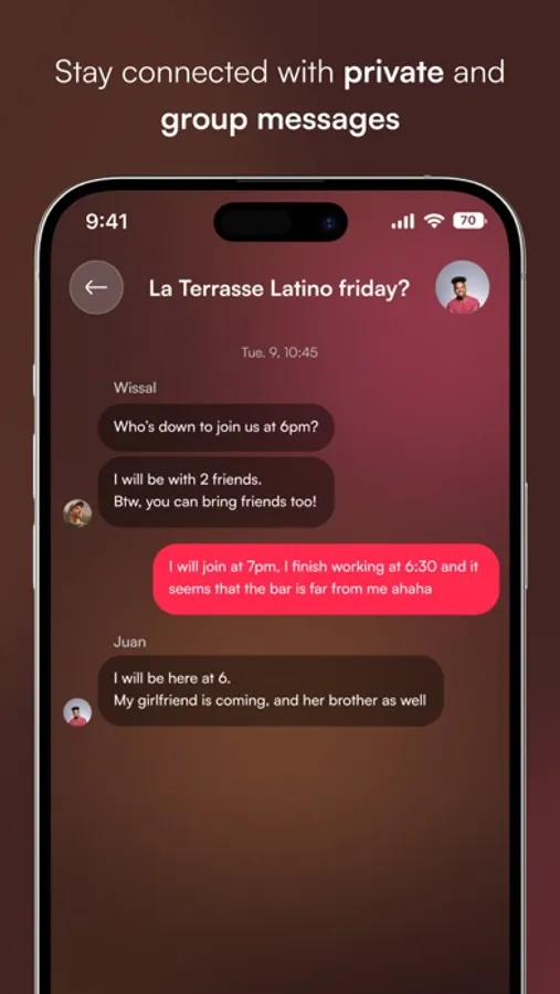- Private and group messages: Organize your outings and stay connected with new friends.