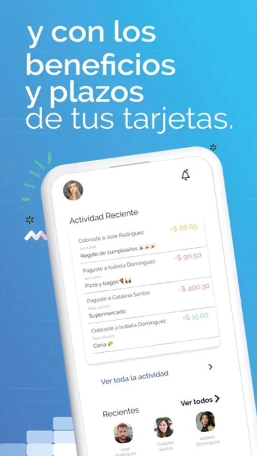 Pagosflex te permite pagar a tus amigos o tus proveedores de servicios o productos de manera fácil, rápida y segura aprovechando los beneficios de tus tarjetas de crédito.