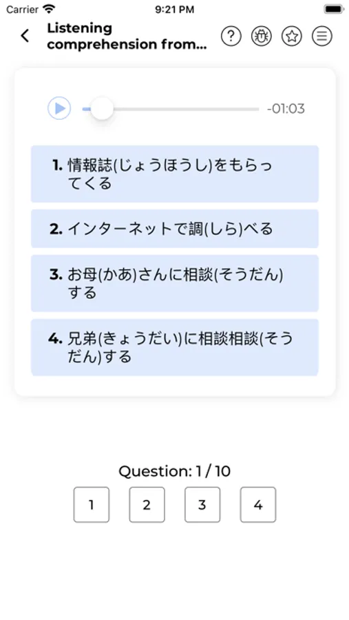 Increase JLPT score for upcoming exam with our app. This app helps you to pass the N1 exam with 14 sample exams and 1000 exam practice questions.