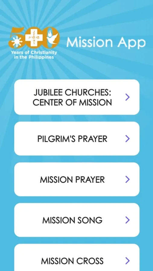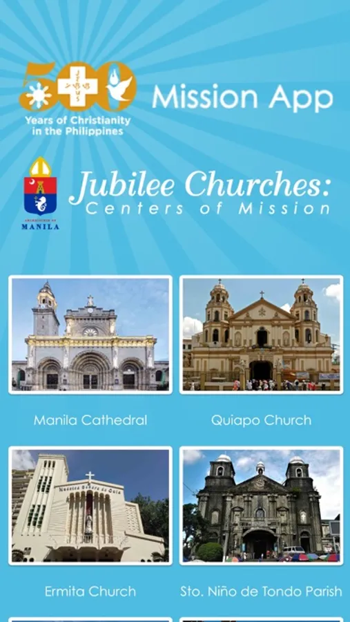 This app will help and guide pilgrims in their journey to the Jubilee Churches in the Archdiocese of Manila. The app is loaded with information about the church’s history, Mass schedules, prayers, and activities for the pilgrims. The Pilgrim’s prayer upon entering the Jubilee Door as well as the Decrees of Indulgences from Rome was included. The Mission App also highlights the Mission Prayer, Mission Song, Mission Cross and details of the celebration from the Archdiocese of Manila.