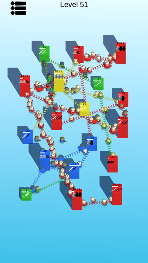 There are 5 types of unit including soldier, builder, gun, tank and bazooka.