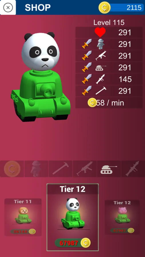Upgrade the units frequently to fight the strong enemy, constantly buy new units to increase the level and to earn more idle coins.