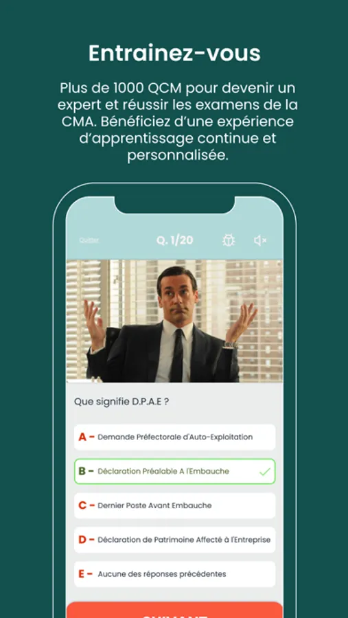 Débloque les séries aléatoires, séries d'entraînement et examens illimités. Pas de publicités et sans engagement.