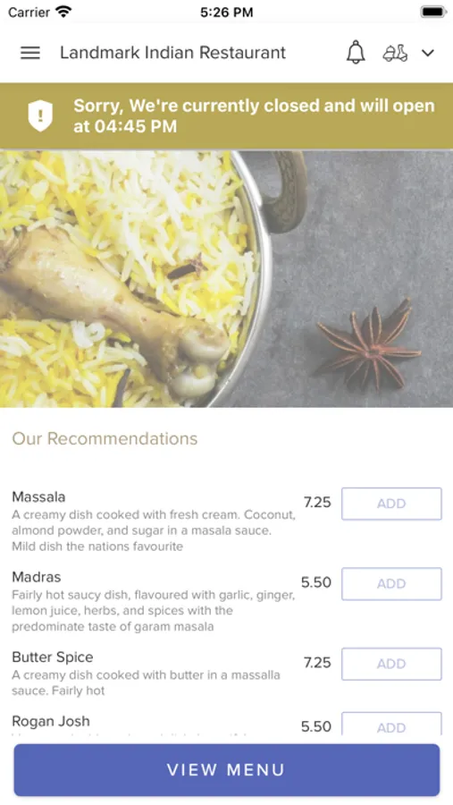 We offer a world of flavours and spices, which all comes together to create a dining experience that will transport you to another world. Our chef prepares all of our authentic dishes completely fresh, we also offer a wide range of authentic Indian cuisine to suit anyone's tastes. We have a new online ordering app which displays our entire menu - so please feel free to browse, find your favourite or try something new, and enjoy our restaurant quality meals in the comfort of your own home.