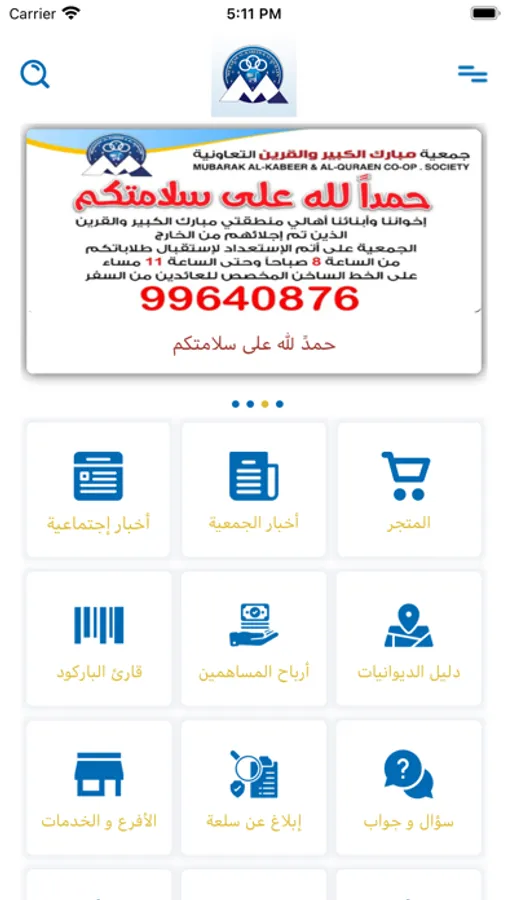 الاصدار الرسمي لجمعية مبارك الكبير التعاونية الذي من خلاله تسعي إدارة الجمعية على تقديم افضل خدماتها للمساهمين ورواد الجمعية عبر هذا البرنامج، والذي يشمل: