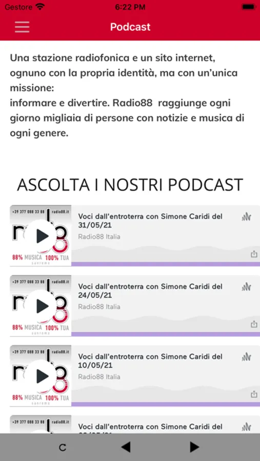 Radio 88 è la Radio, nata a Sanremo dal progetto di Giusy Di Martino, unitamente ad un gruppo di voci conosciute e voci nuove.