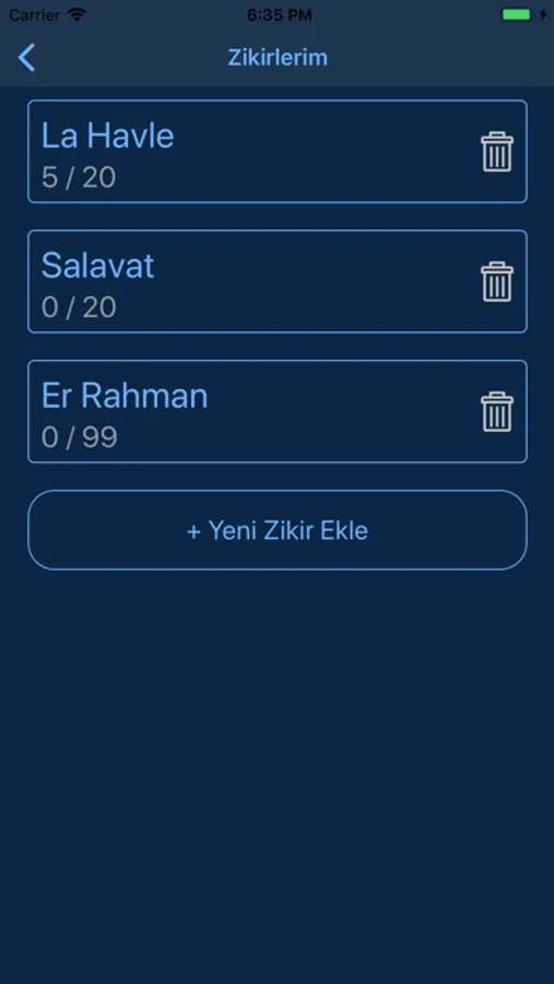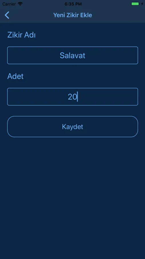 - Belirtilen zikir hedefine ulaşılınca ses ve titreşim ile uyarı