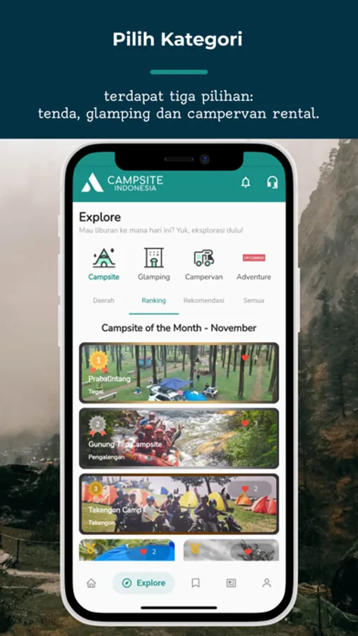 Kami juga membantu kamu menemukan tempat berkemah otentik di seluruh penjuru Indonesia.
