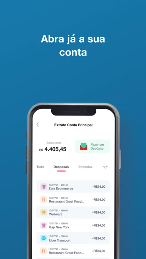 - Abrir sua conta digital pelo aplicativo sem sair de casa, de forma instantânea.
