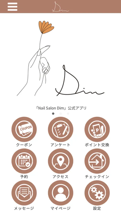 このアプリでは、Dimの最新情報の受け取りや便利な機能を使う事ができます。