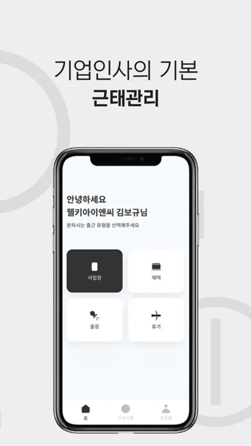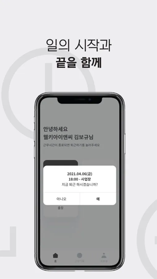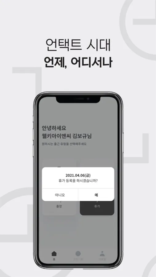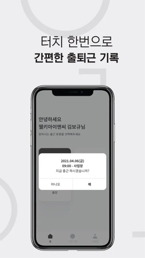 2. 언제 어디서나 스마트폰 터치 한 번으로 간단하게 출퇴근을 기록하고,