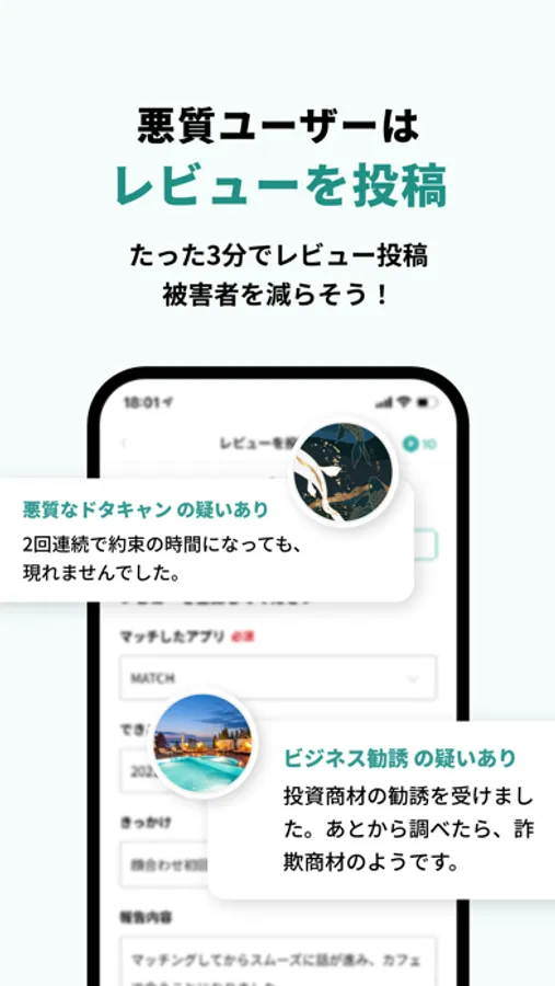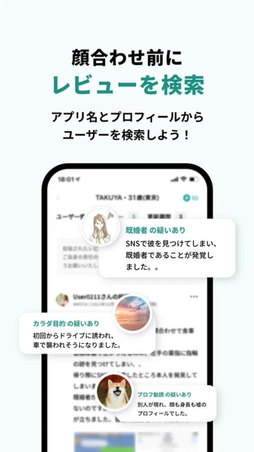 ■マッチングアプリを利用する悪質ユーザー情報を検索&投稿!