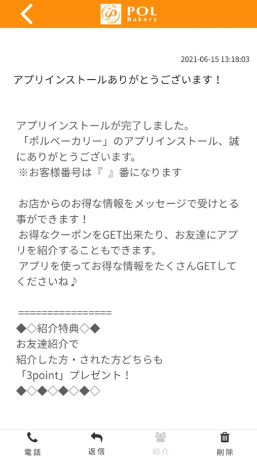 ポルベーカリーのアプリをSNSを通じてお友達に紹介する事ができます。