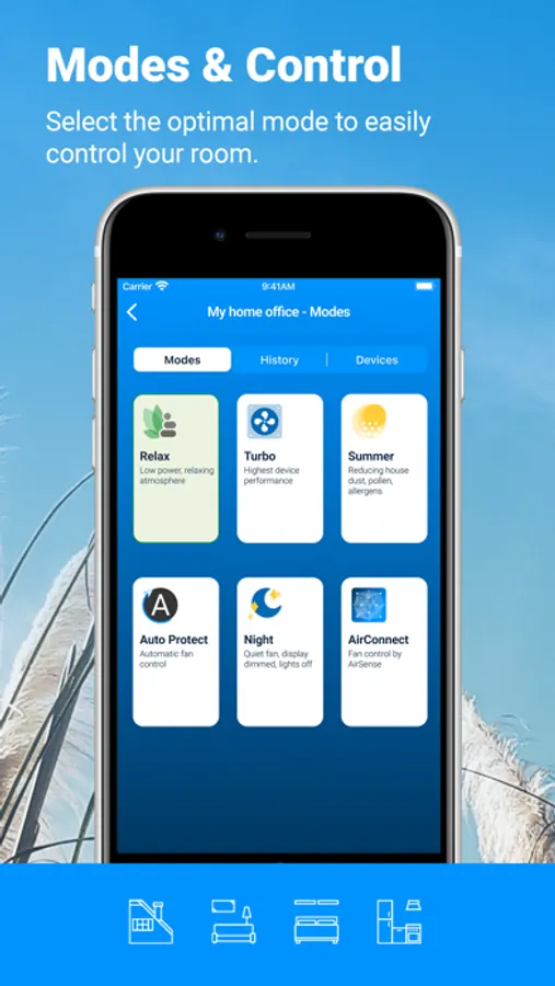 Predefined modes like Sleep, TV/Relax, Summer/Allergy, Automatic, and Turbo make operation even easier. For instance, you can activate the TV mode with one click to enable quiet operation or enable the AeroStyle to generate a warm LED color tone.