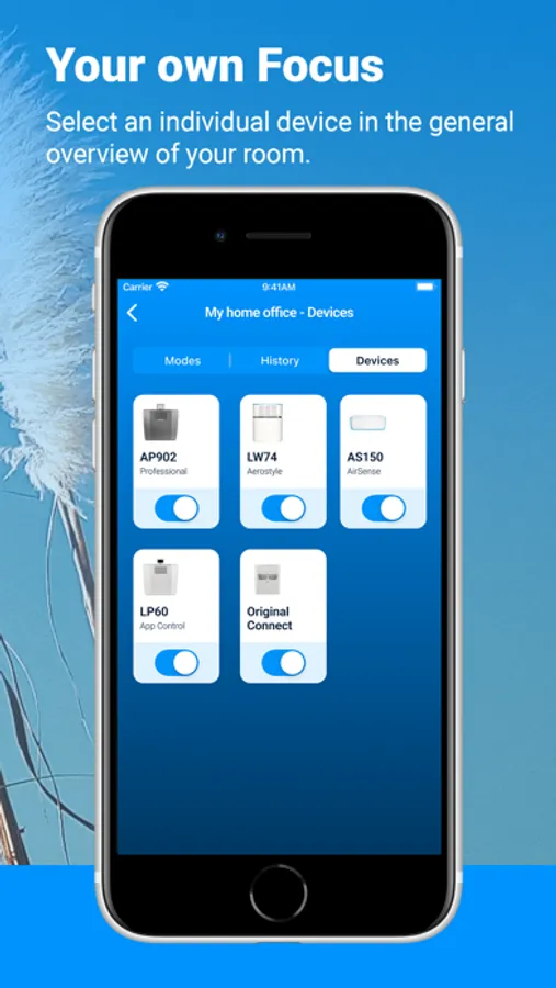 With Venta Home, it’s easy to control all of your Venta appliances that have Wi-Fi functions using your smartphone. This allows you to easily ensure optimal air quality in your home at any time – from wherever you are.