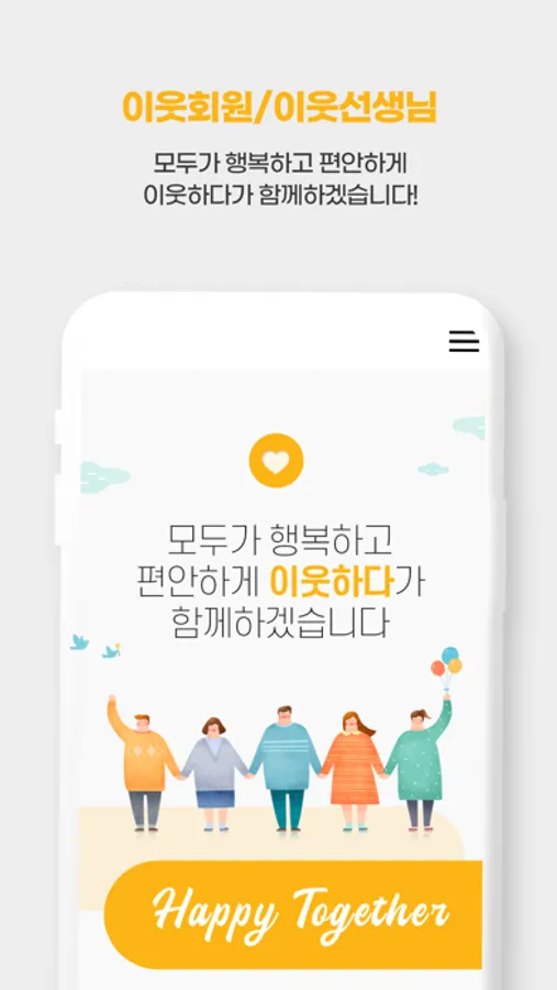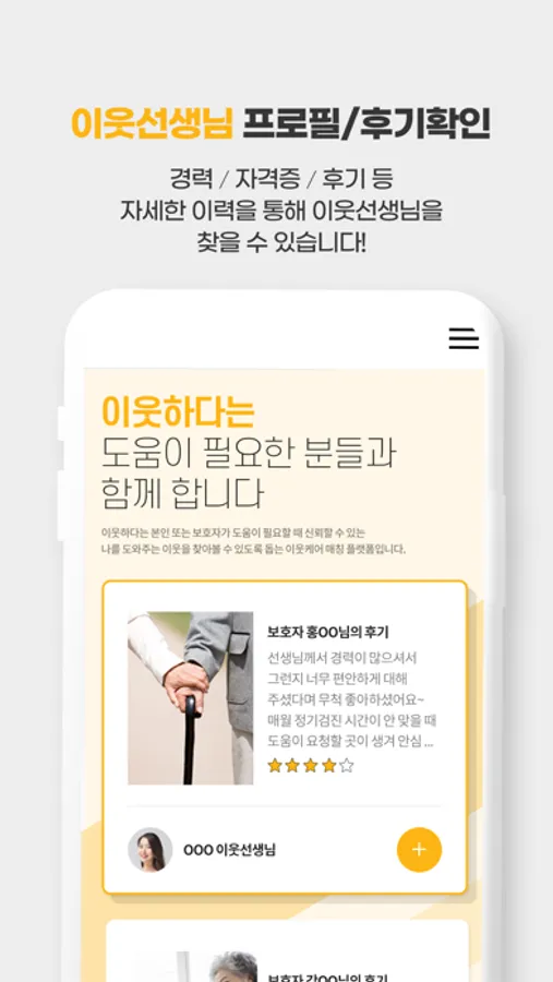 모바일 앱으로 ‘나를 도와주는 이웃’을 쉽고 빠르게 찾아볼 수 있습니다.