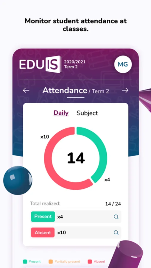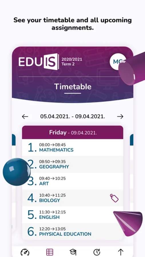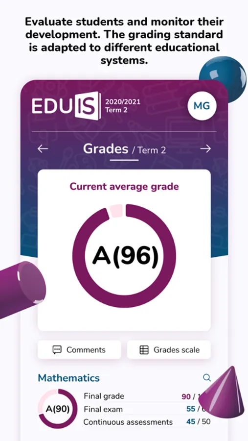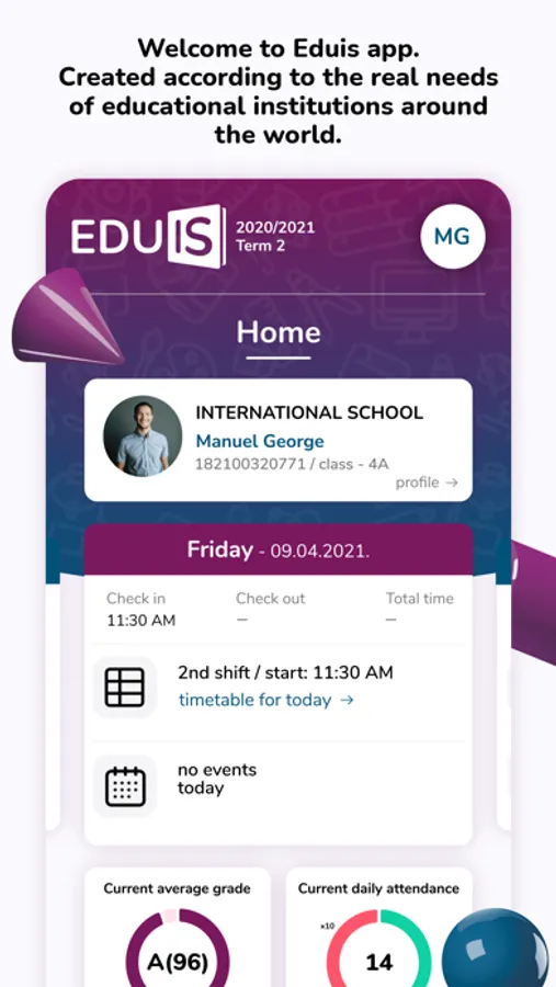Eduis app for students and parents provides a clear overview of school subjects, class schedules, grades, attendance and activity calendars for better organization and engagement.
