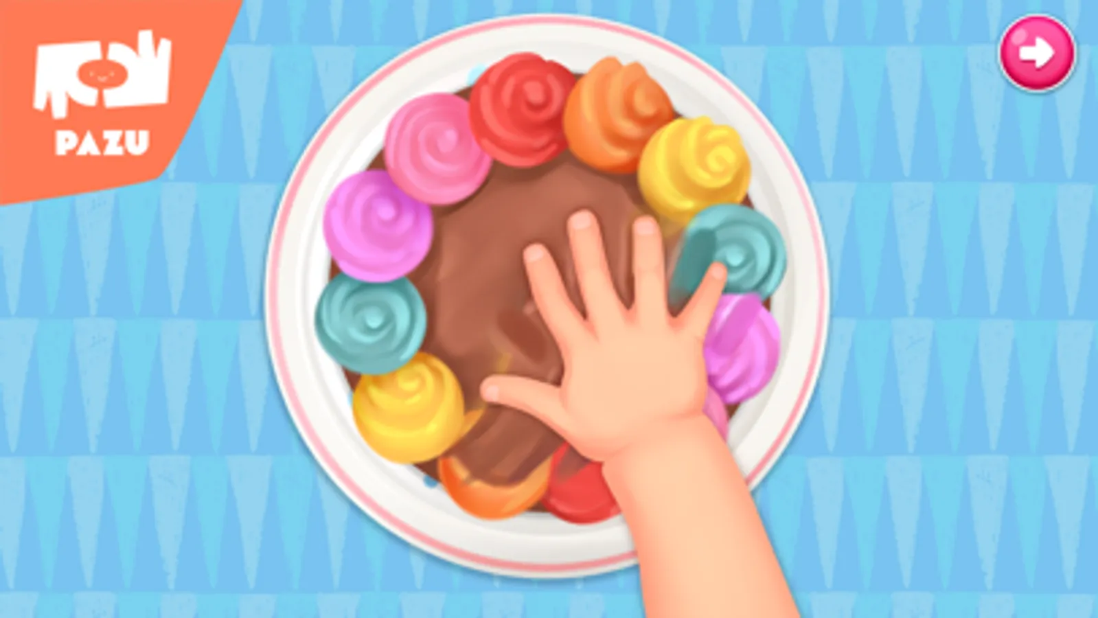 - Cake baking - mix the ingredients in the bowl and pour the dough into a baking tray, after it's ready decorate it with colorful frostings and shapes like hearts, stars, animals, and more.
