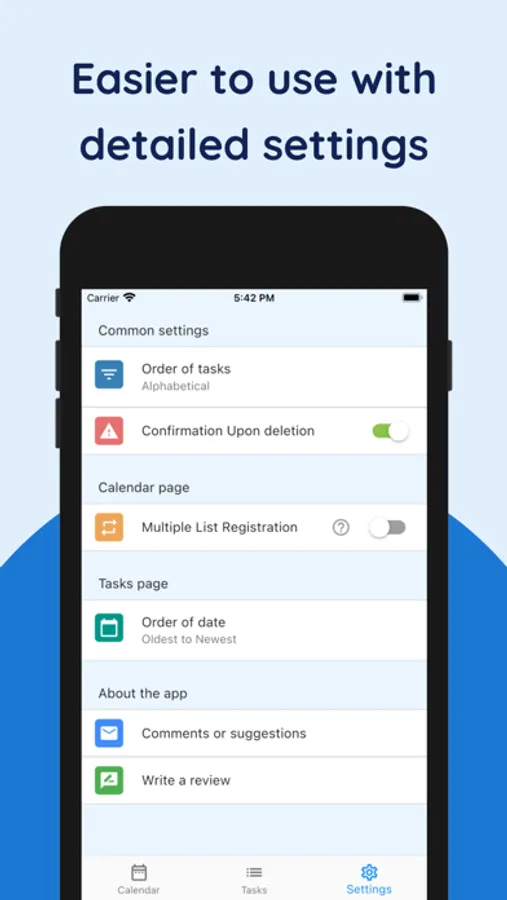 When the setting is turned on, a confirmation message will be shown when deleting a task.